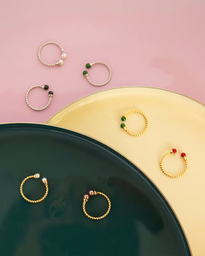 The Twist collection is inspired by fluidity and movement, these open rings are designed to adapt to your daily style. With two pearls and an adjustable design. Conceived as versatile pieces, they are made to be combined with each other, becoming essential pieces that add dynamism.