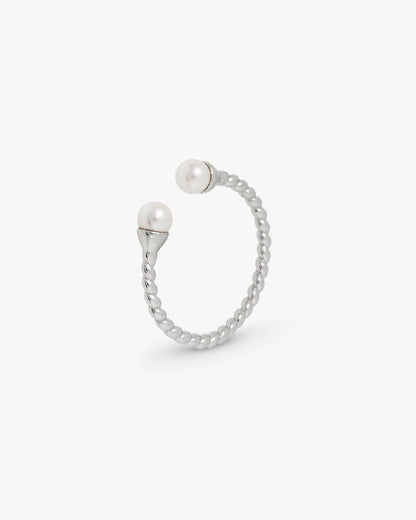 Adjustable ring in rhodium-plated silver with 4mm white round pearls.