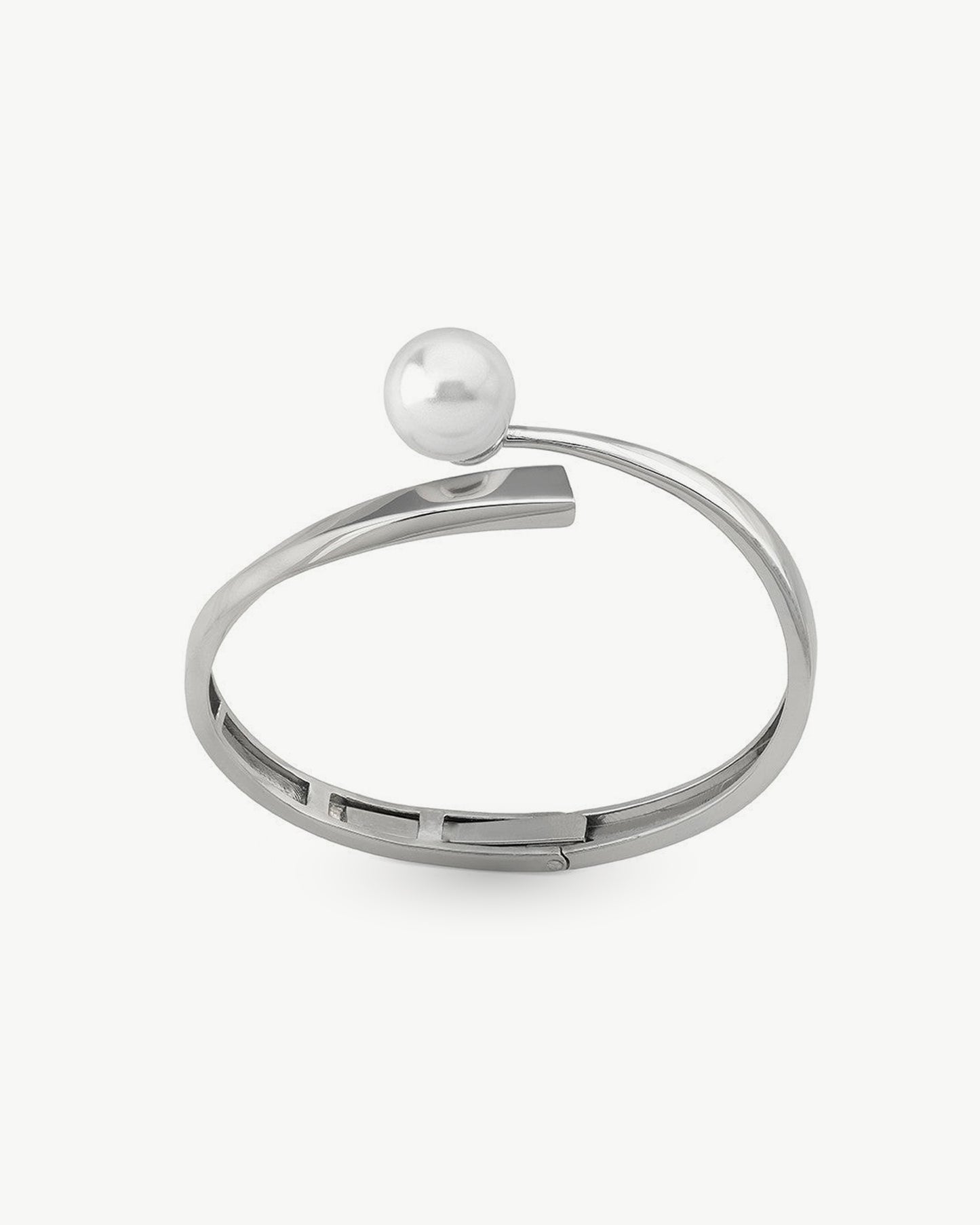Rigid bracelet 58x46mm in rhodium-plated silver, 12mm white round pearl.