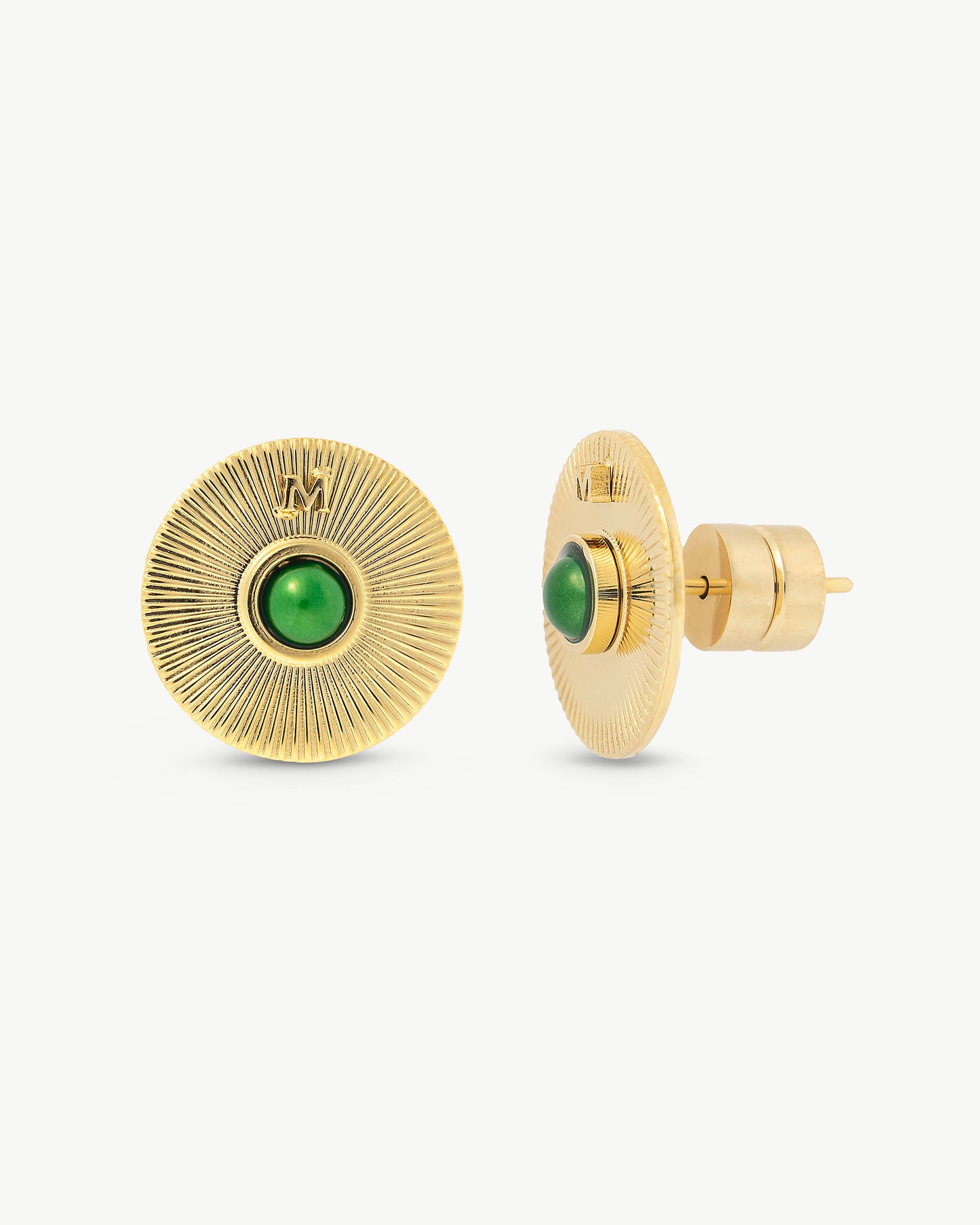 Circular shapes, golden shine and the symbolism of the sun as a source of energy and power inspire these spike earrings, where history and design intertwine in a piece with its own character.