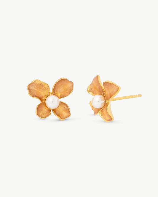 Pendientes Cortos con Perla Oval 12mm Dorados Nuada