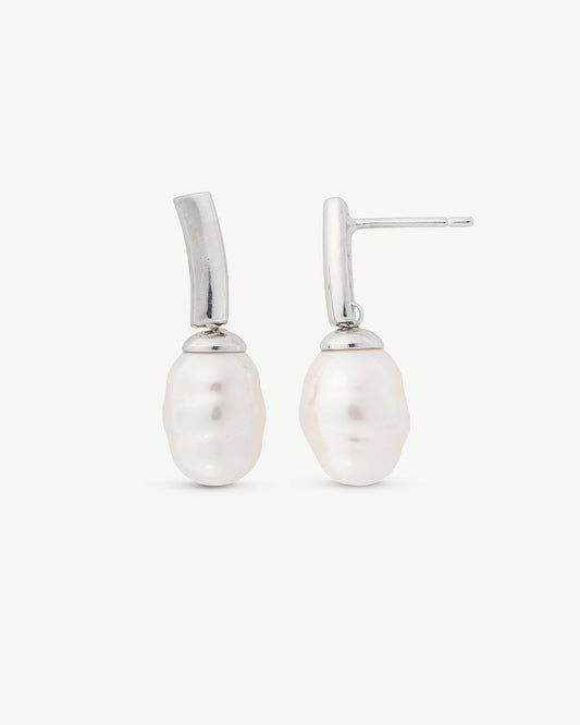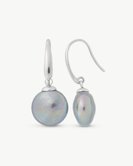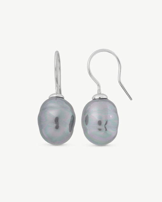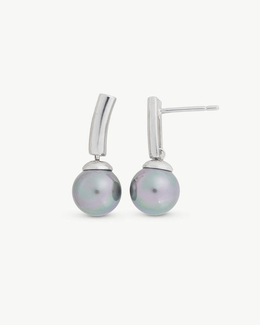 Pendientes Cortos con Perla Oval Gris 12mm Nuada