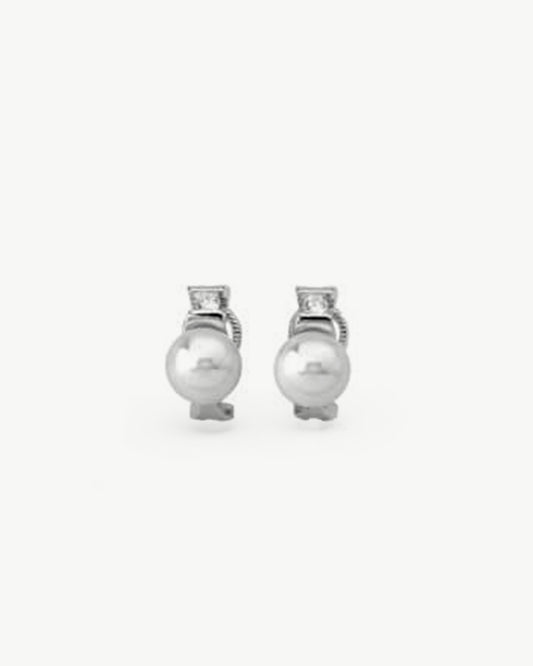 Pendientes Cierre Omega Perla 12mm y Circonita Cuadrada Selene