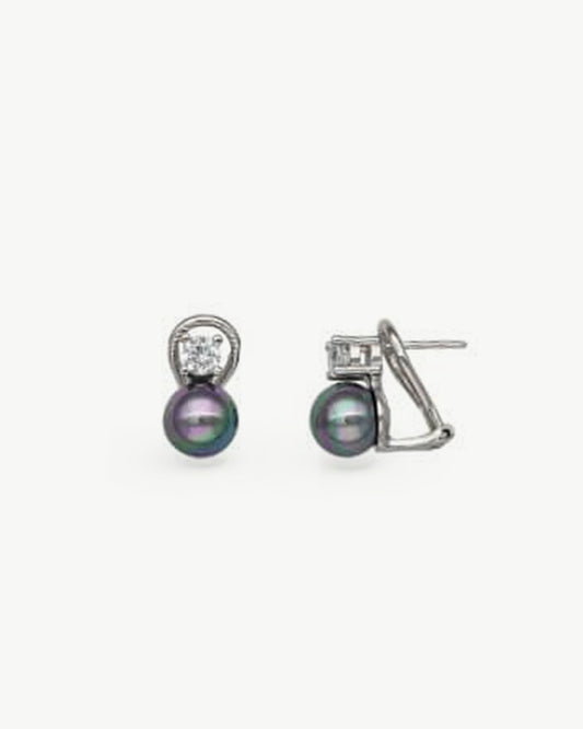 Pendientes Cierre Omega Perla 8mm Gris y Circonita Selene