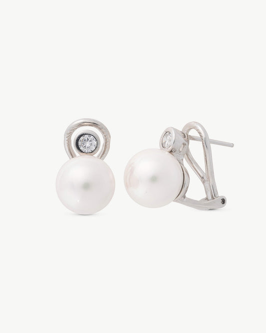 Pendientes Cierre Omega Perla 10mm y 2 Circonitas Selene