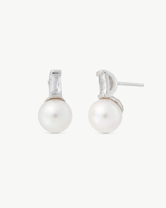 Pendientes Perla 8mm y Circonita Cuadrada Selene