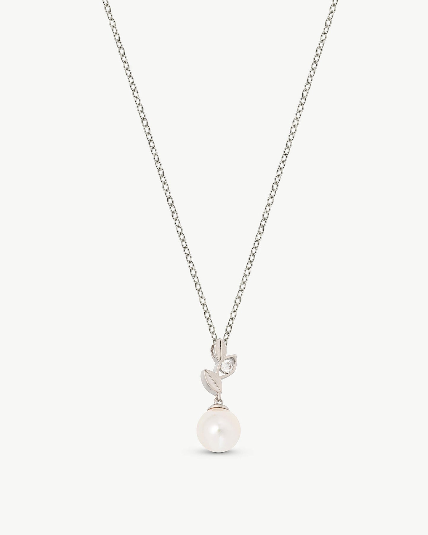 Collar Hojas con Perla 10mm y Circonita Selene