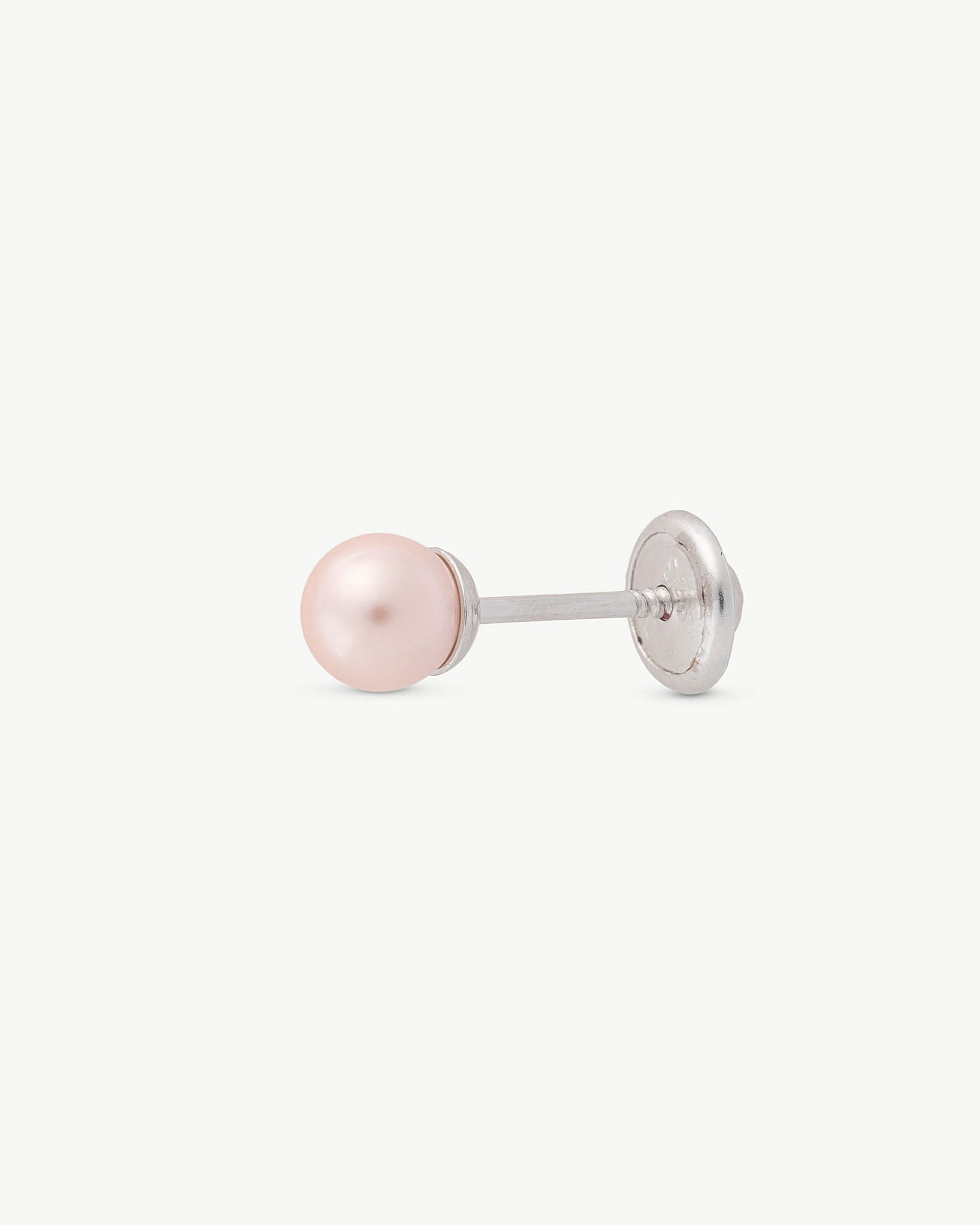Pendiente unidad en plata con cierre de rosca, perla redonda pink de 4mm.