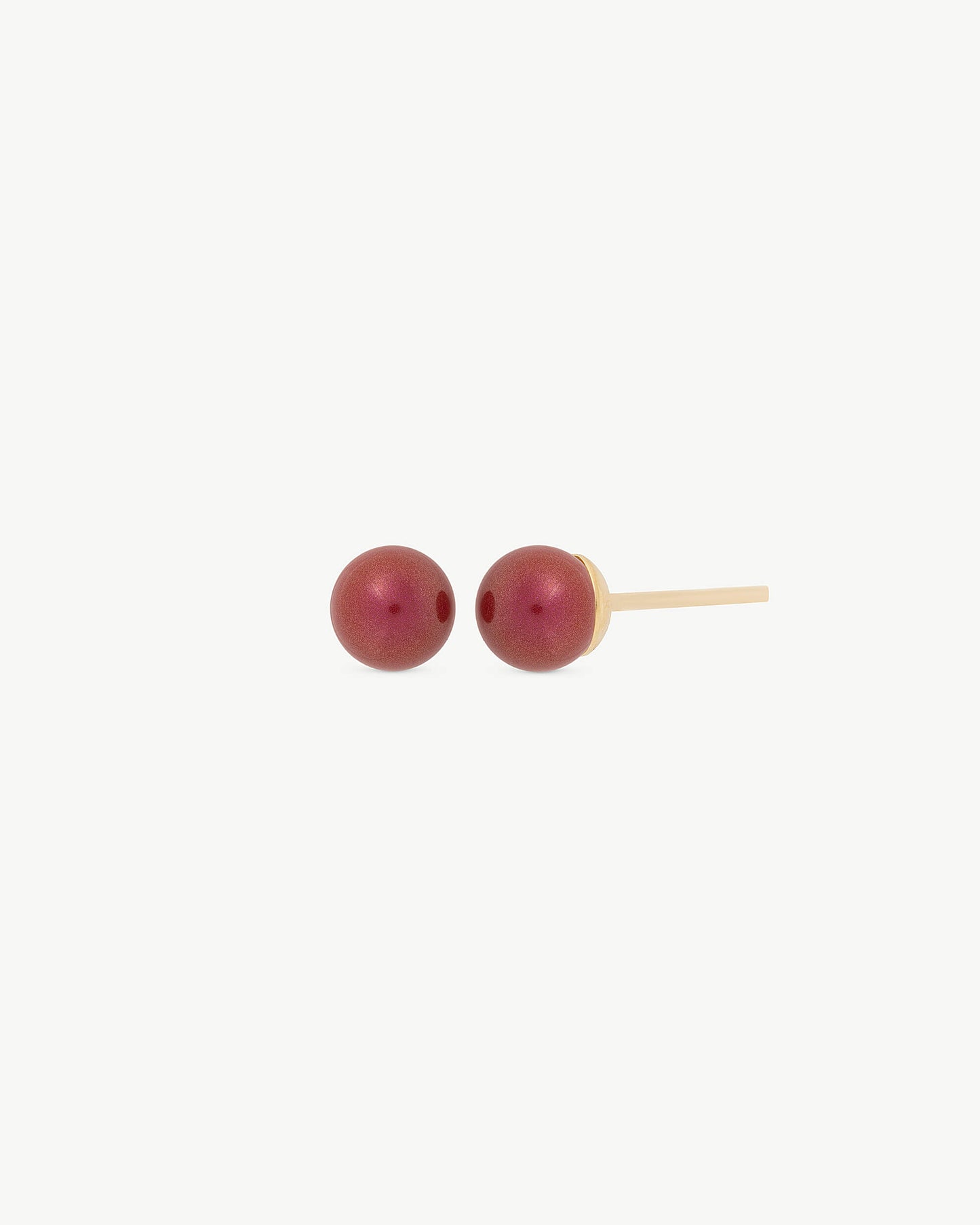 Pendientes de bolita con cierre de pincho en plata bañada en oro de 18k con perla redonda de 4mm roja.