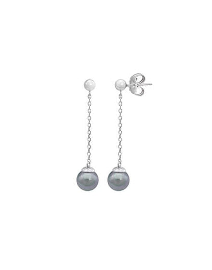 Pendientes con pincho en plata con perla redonda gris de 8mm. Una colección que es fantasía.