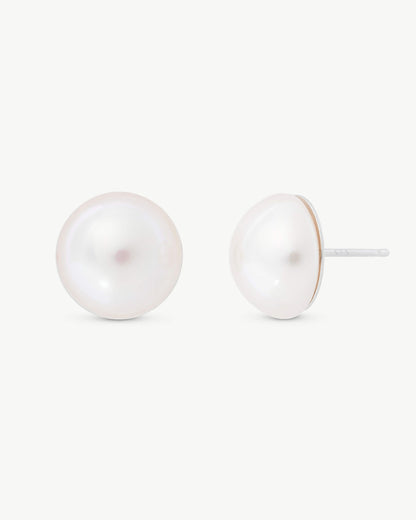 Pendientes con cierre de pincho en plata y media perla mabé blanca de 12mm.