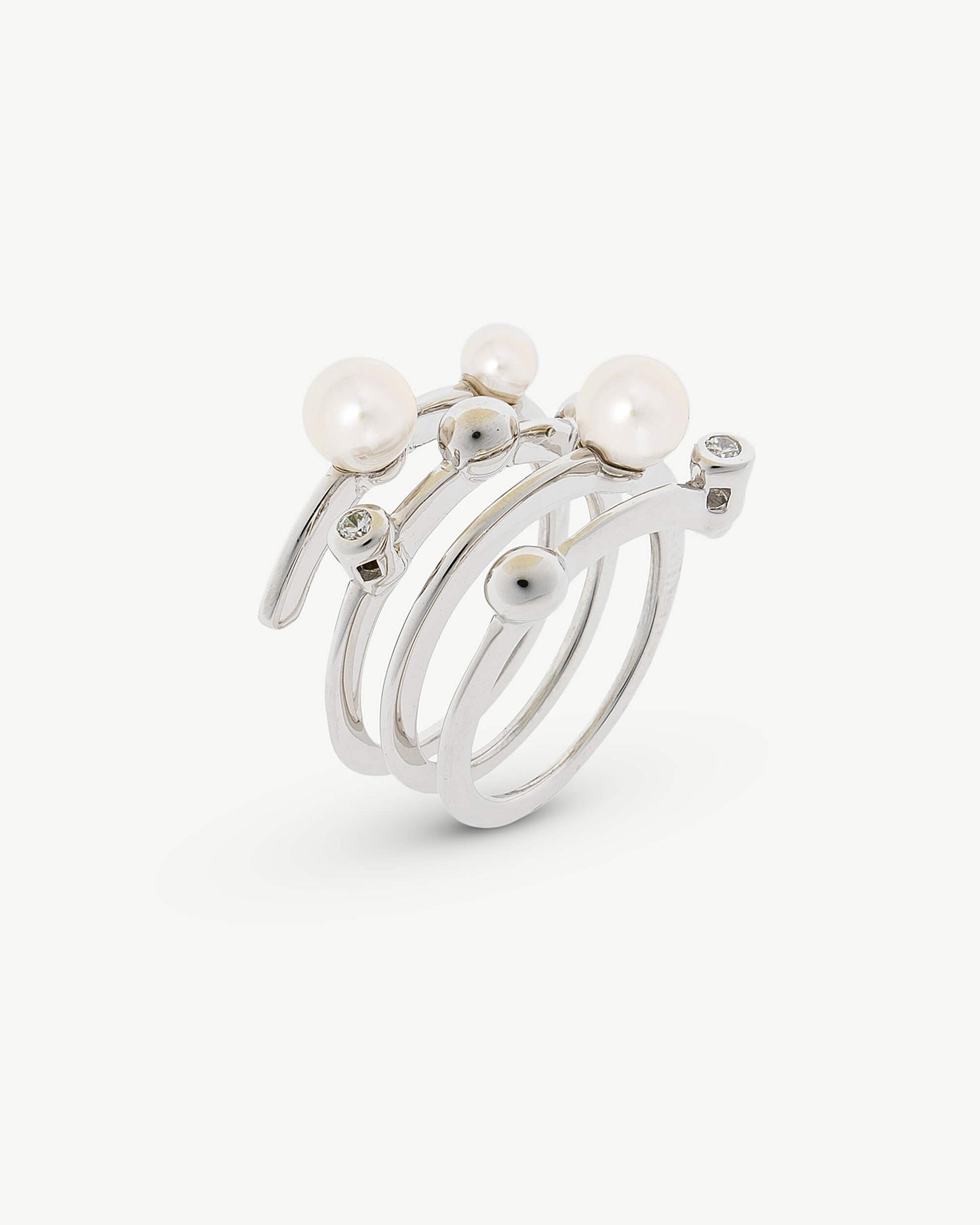 Anillo cerrado en plata con perlas redondas blancas de 4/6mm y circonitas.