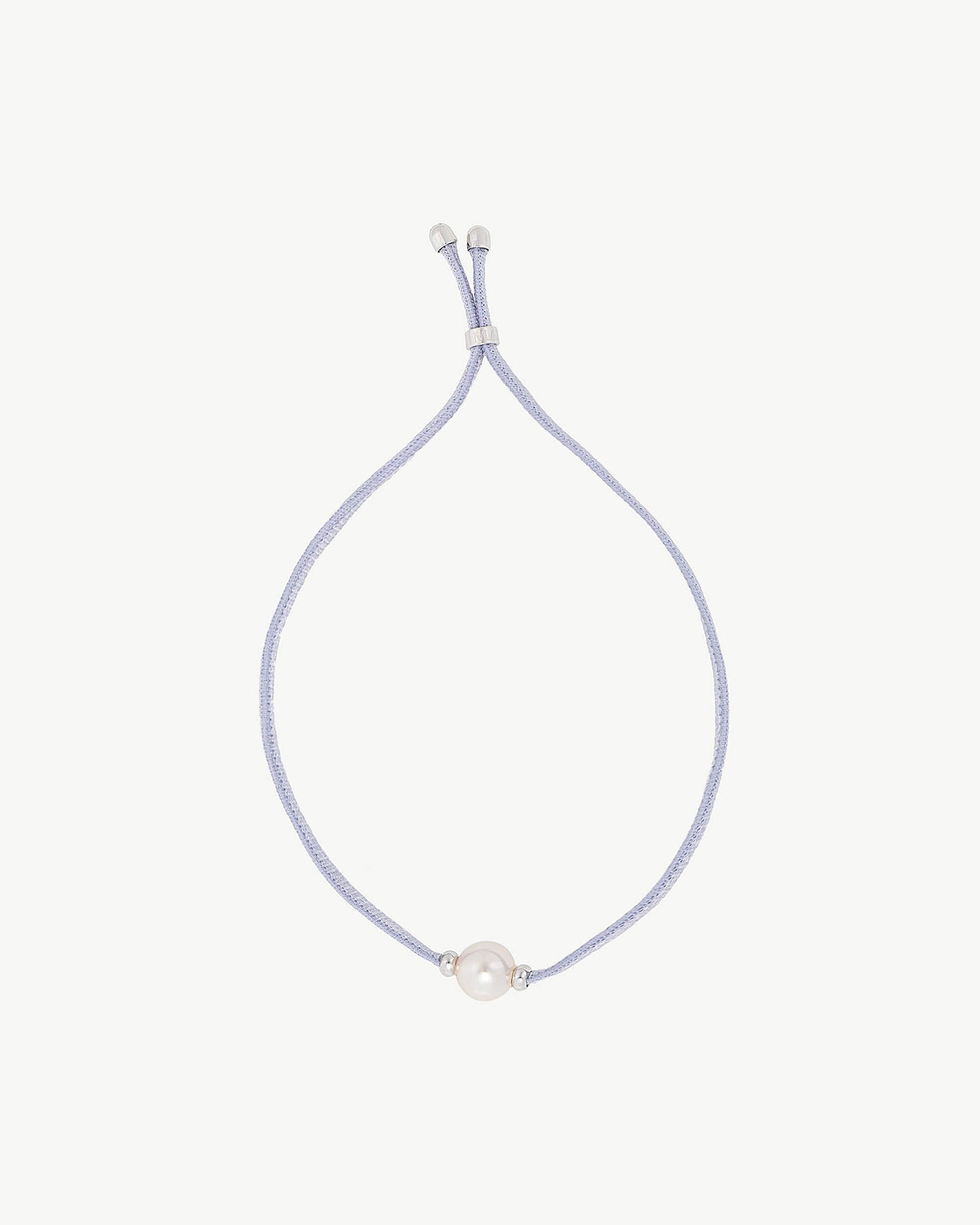 Brazalete elástico de 20 cm ajustable en color azul bebé, perla redonda blanca de 8 mm.. La colección Sifnos es un tributo a la fuerza y empoderamiento.