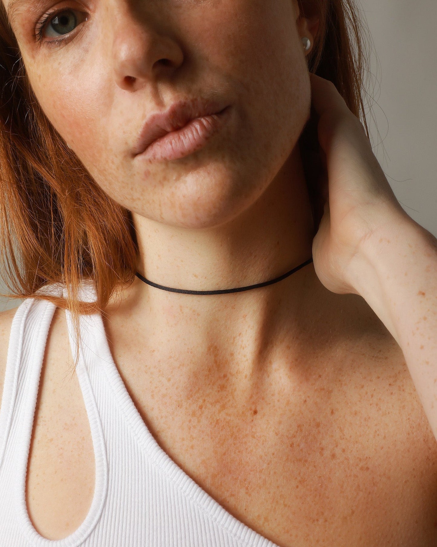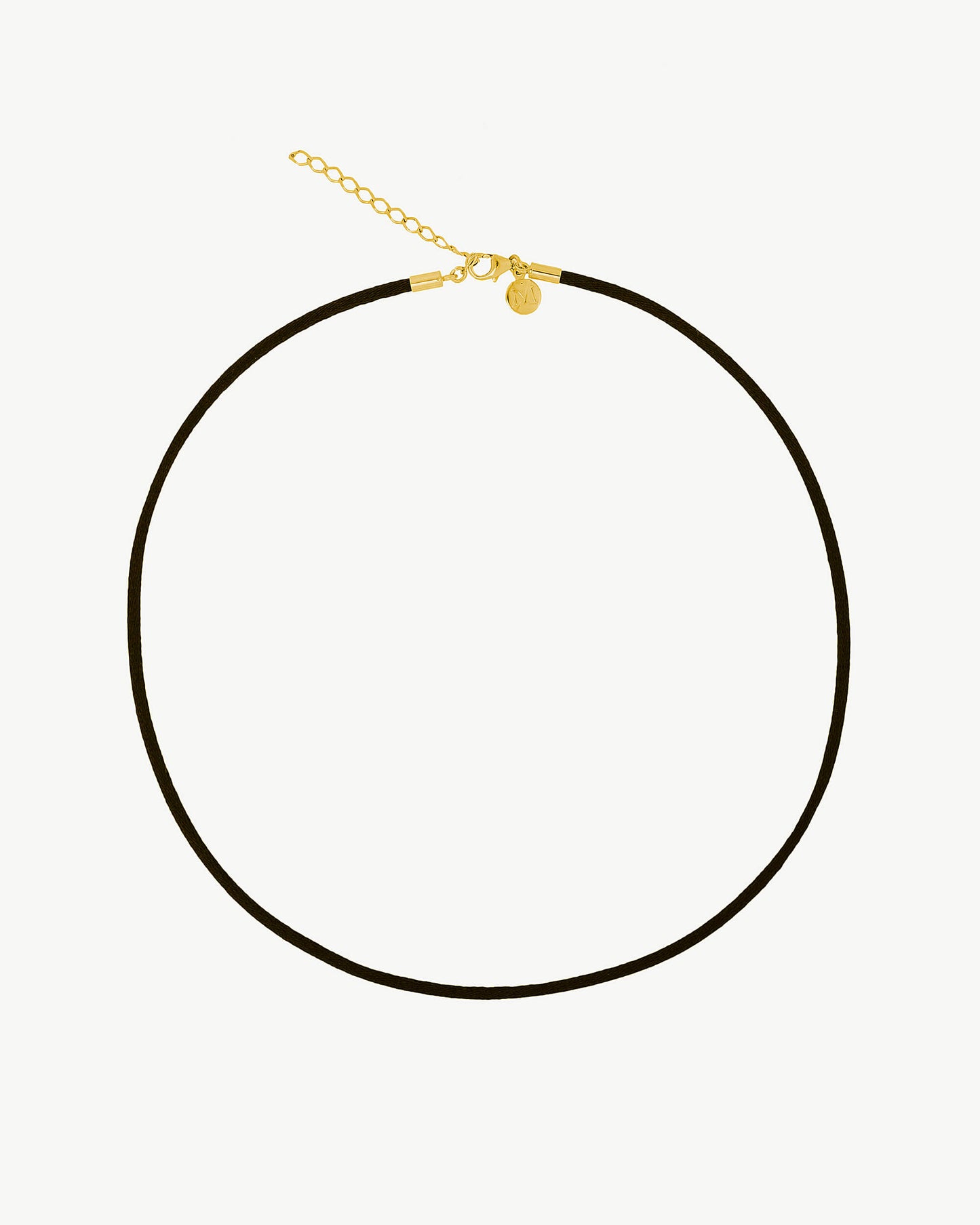 Cinta de seda negro esmeralda de 40cm de largo con terminales en plata y baño en oro.. Majorica crea Chains, una colección de joyas que permiten la combinación y creación de un estilo propio con una joya única.