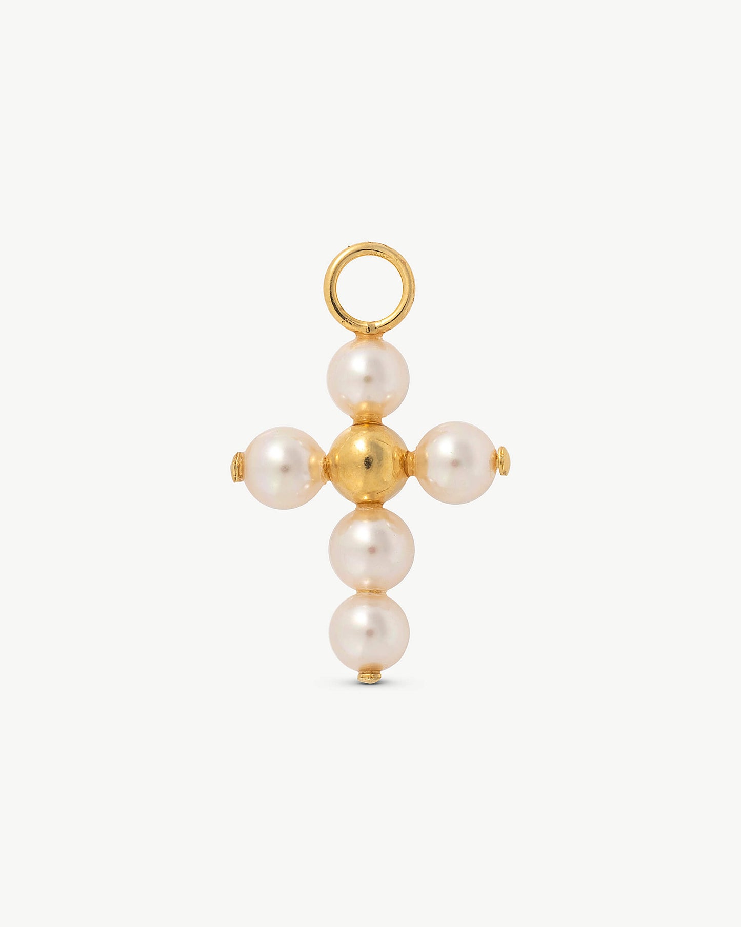 Charm Cruz Dorada Perla 4mm Blanca Cruces