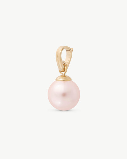colgante tipo charm en plata con baño en oro. Perla redonda pink de 10mm.. Joyas con charms.