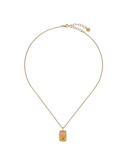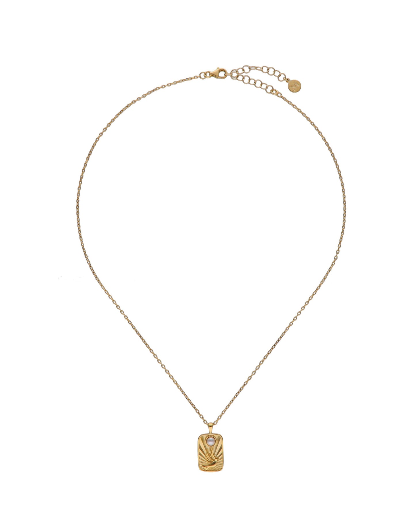 Colgante con cadena en plata bañada en oro de 18k. Perla blanca media bola de 4mm. Largo 37 cm. Joyas ideadas para regalar, joyas creadas para acompañar en momentos especiales.