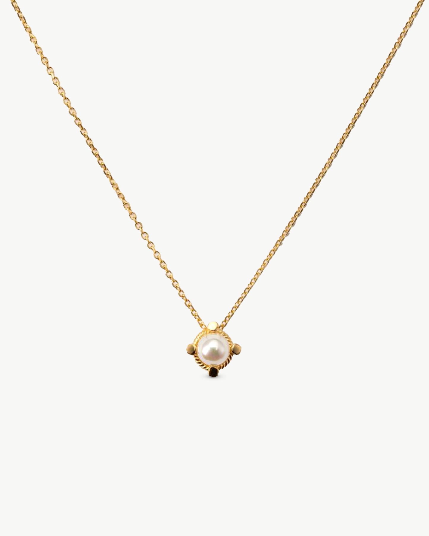 Cadena corta de plata bañada en oro, de 37/42cm. de longitud, con colgante de perla redonda de 6mm.