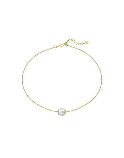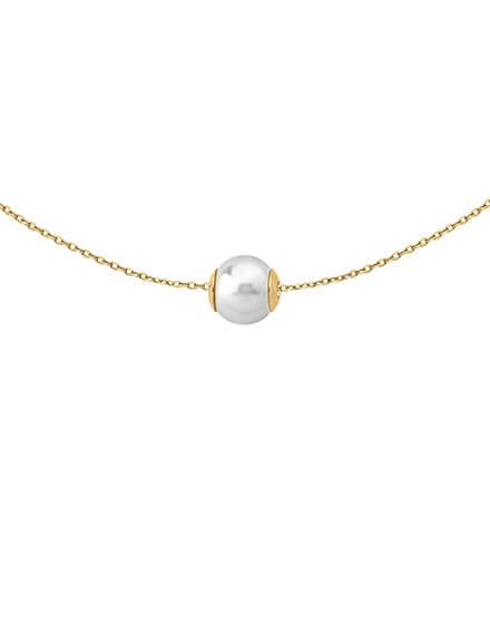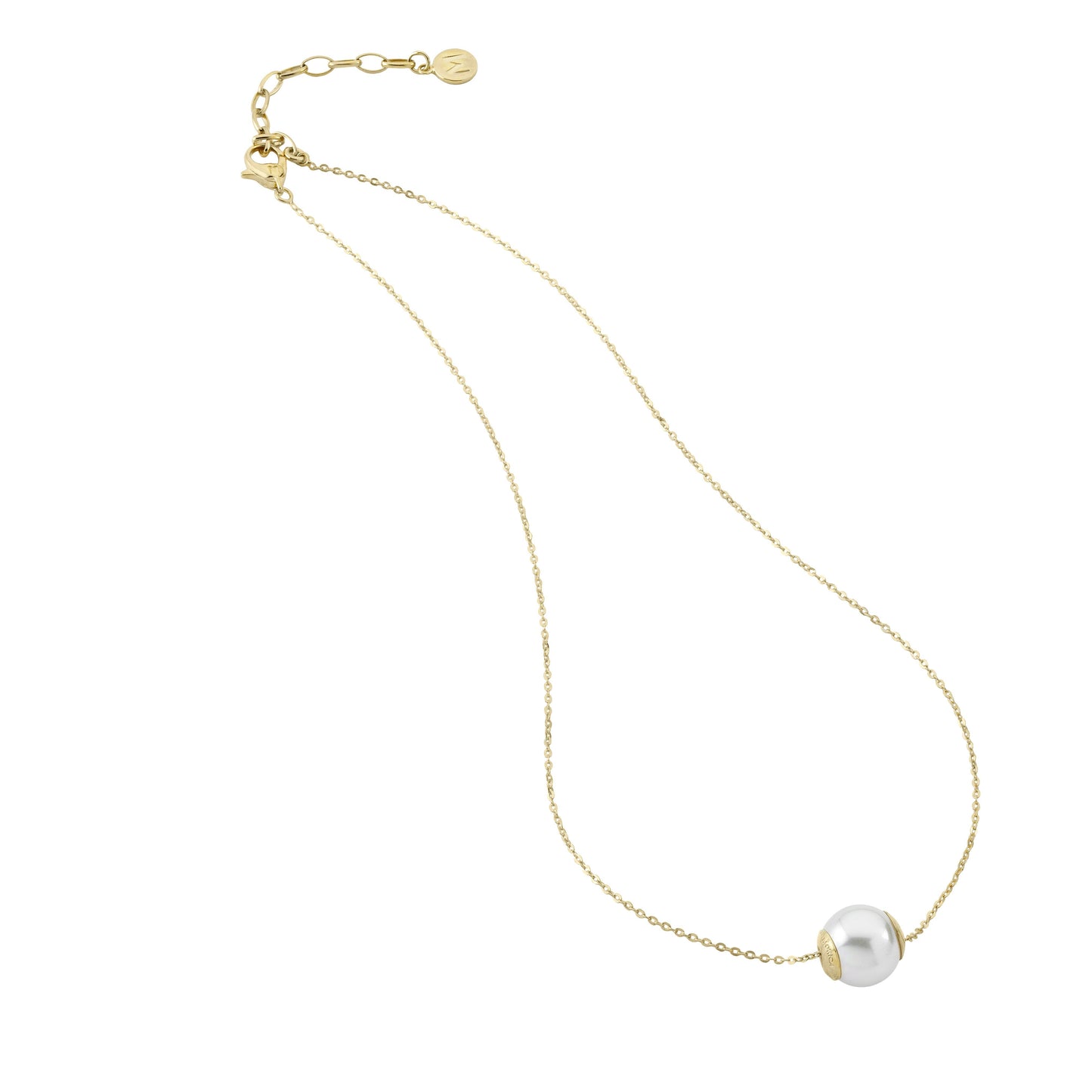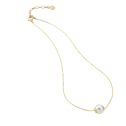 Cadena de 48 cm., de palta bañada en oro, con colgante de perla redonda blanca de 12mm.