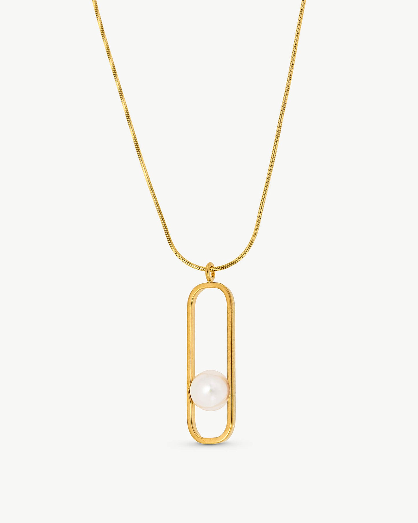 Colgante con cadena de 37cm en plata bañada en oro de 18k con perla blanca redonda de 10mm.