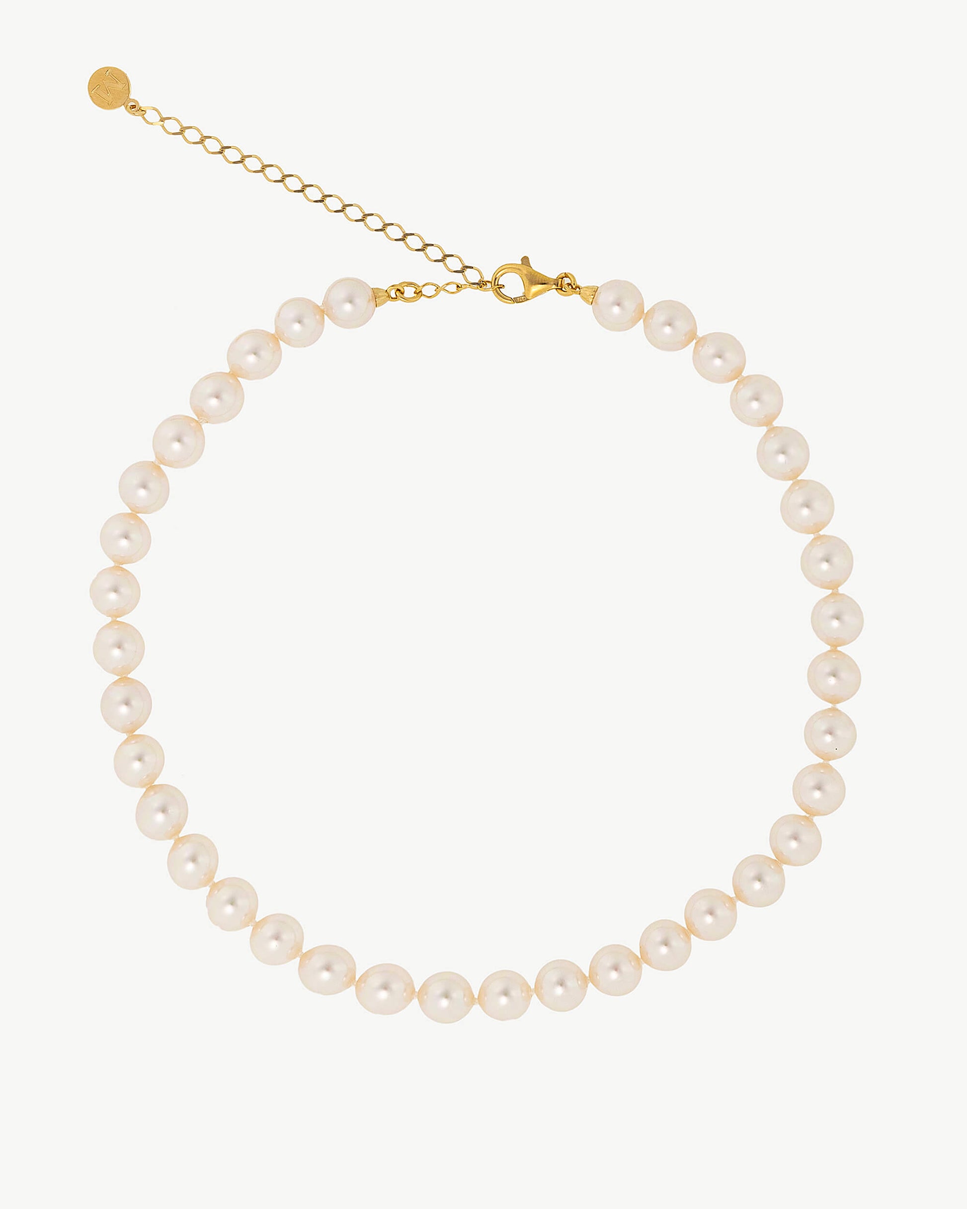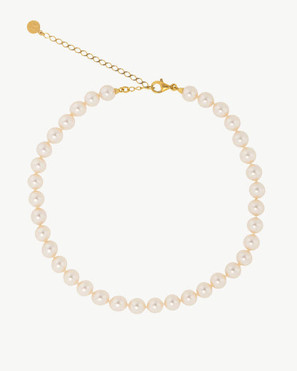 Collar corto de 32/40cm en plata bañada en oro de 18k, perla redonda blanca de 8mm. La magia y elegancia propia del ballet clásico se reinventa en esta colección de clásicos atemporales.