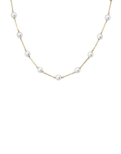Collar encadenado 45/50cm en plata bañada en oro de 18k, 8mm perlas Redondas blancas . Una colección que es fantasía.