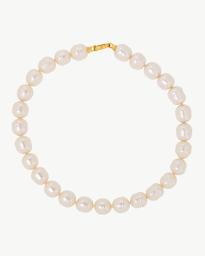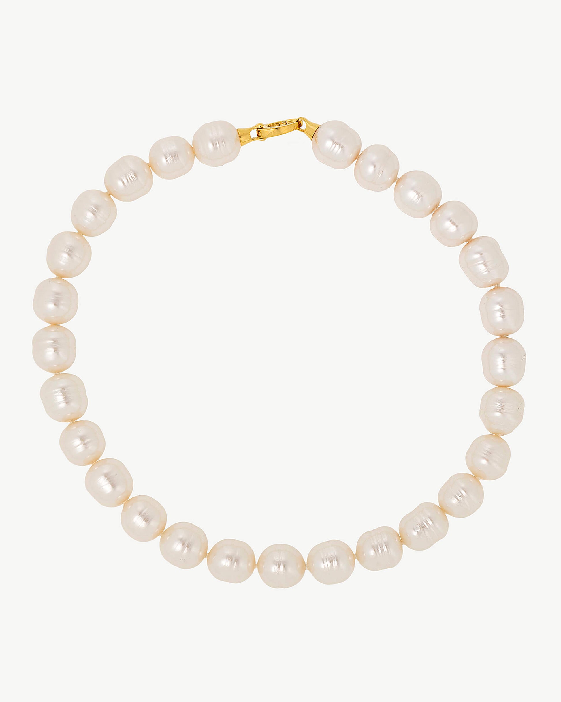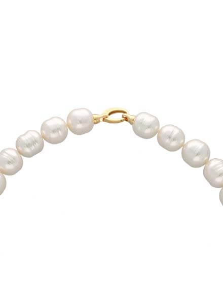 Collar corto de 42 cm en plata bañada en oro de 18k, perlas redondas blancas de 14 mm.