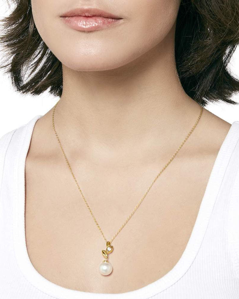 Colgante con cadena de 48cm en plata bañada en oro de 18k con perla de 10mm redonda blanca y circonita.