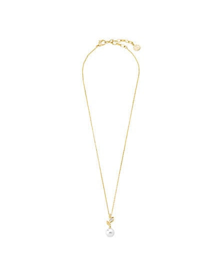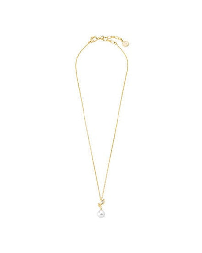Collar Hojas con Perla 10mm y Circonita Dorado Selene