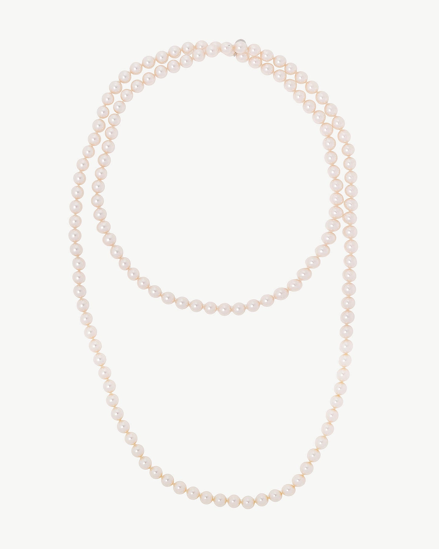 Collar largo de 120cm, 8mm perlas redondas blancas. Los clásicos que nunca se pasan de moda.