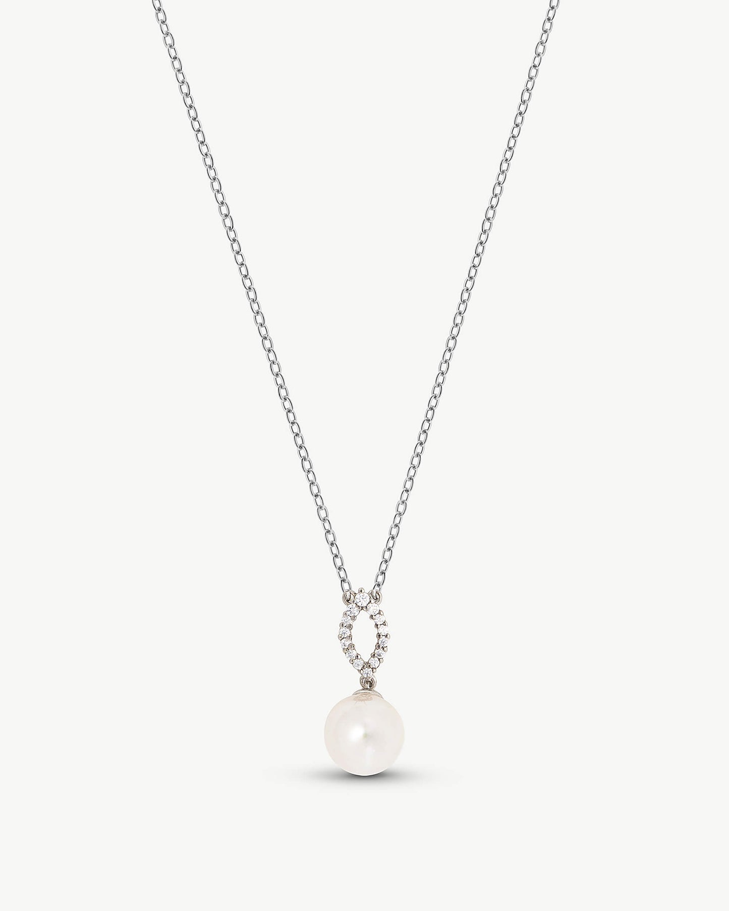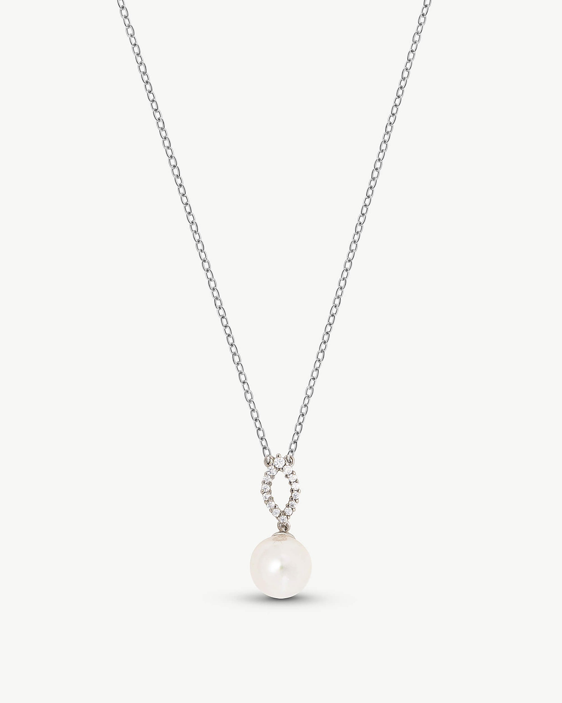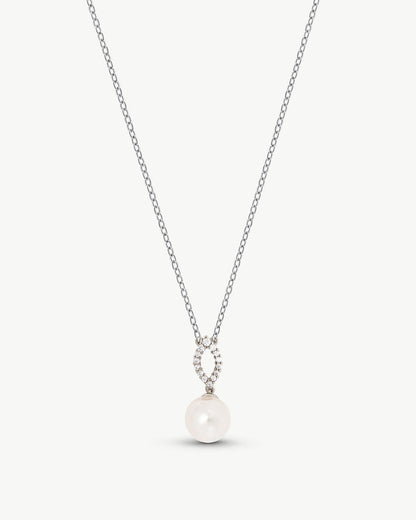 Collar corto 42/47cm en plata, 12mm perla redonda blanca y circonitas. La colección perfecta la hace la pareja perfecta.