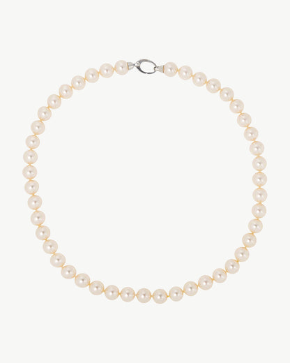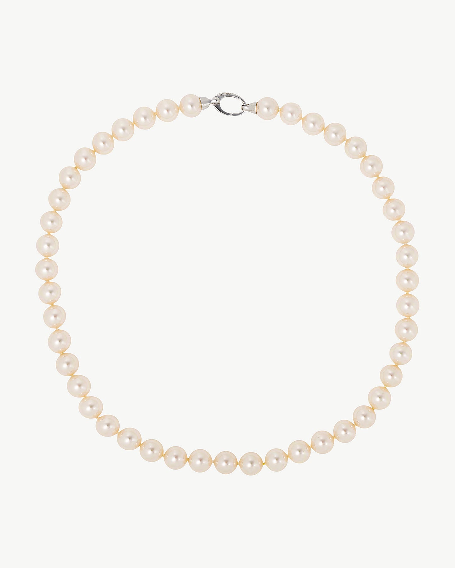 Collar corto de 50 cm en plata, perlas redondas blancas de 10 mm.