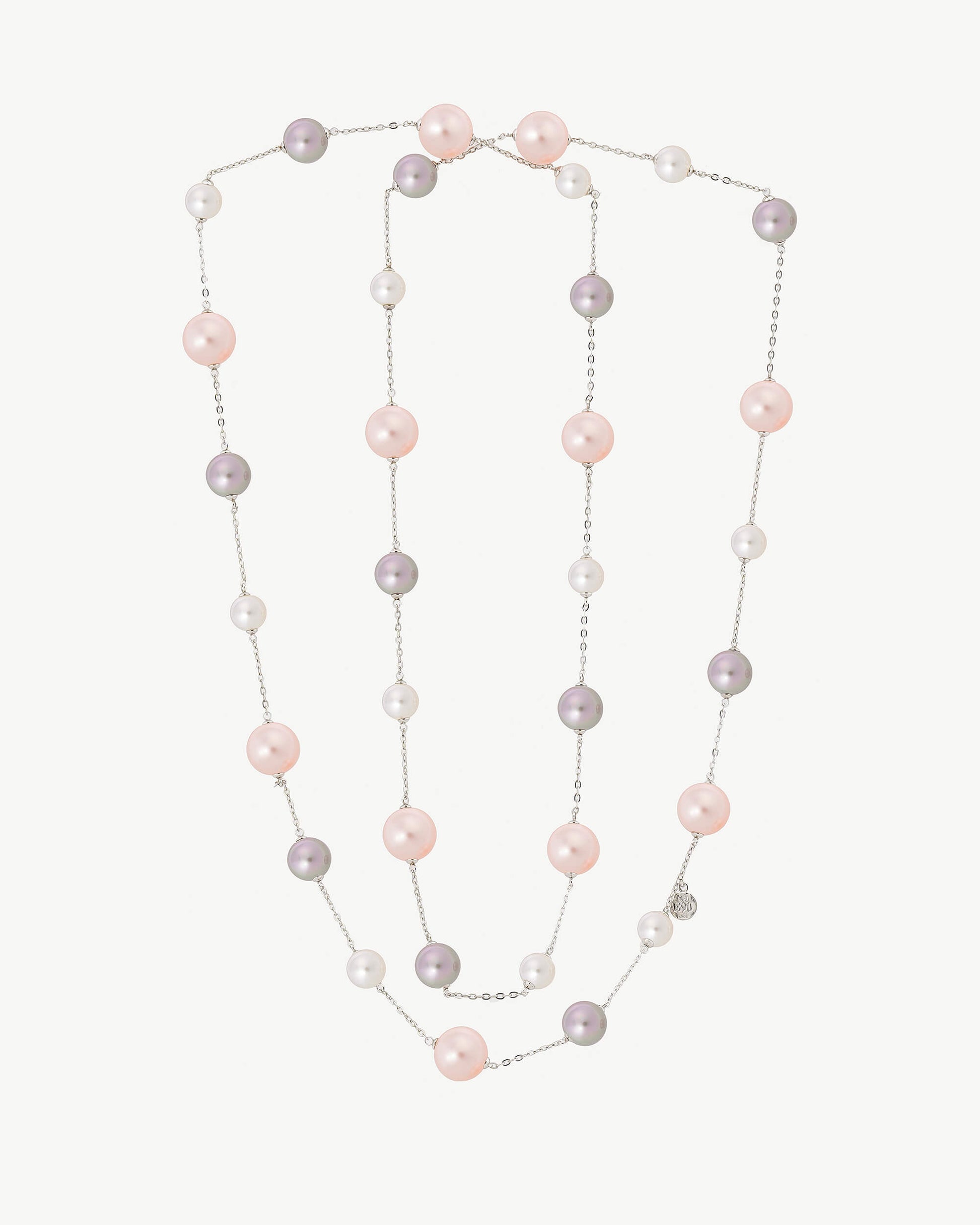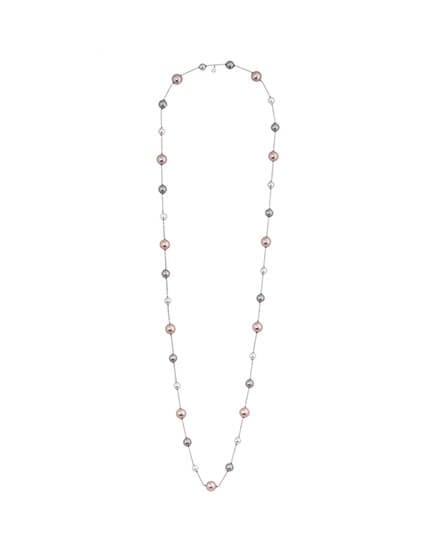 Collar encadenado 110cm en plata con perlas Redondas multicolor: blancas, nuage y rosas. El tamaño de las perlas 8, 10, 12mm. Una colección que es fantansía.