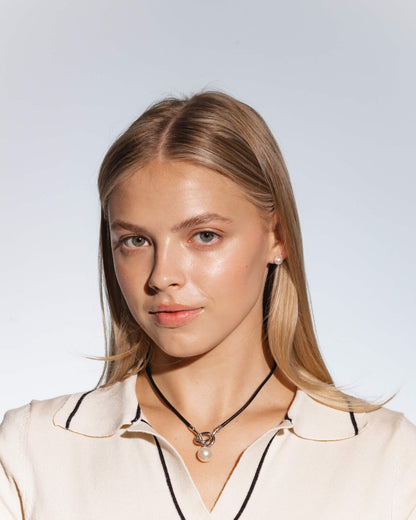 Collar Cuero y Perla Negro Sicilia