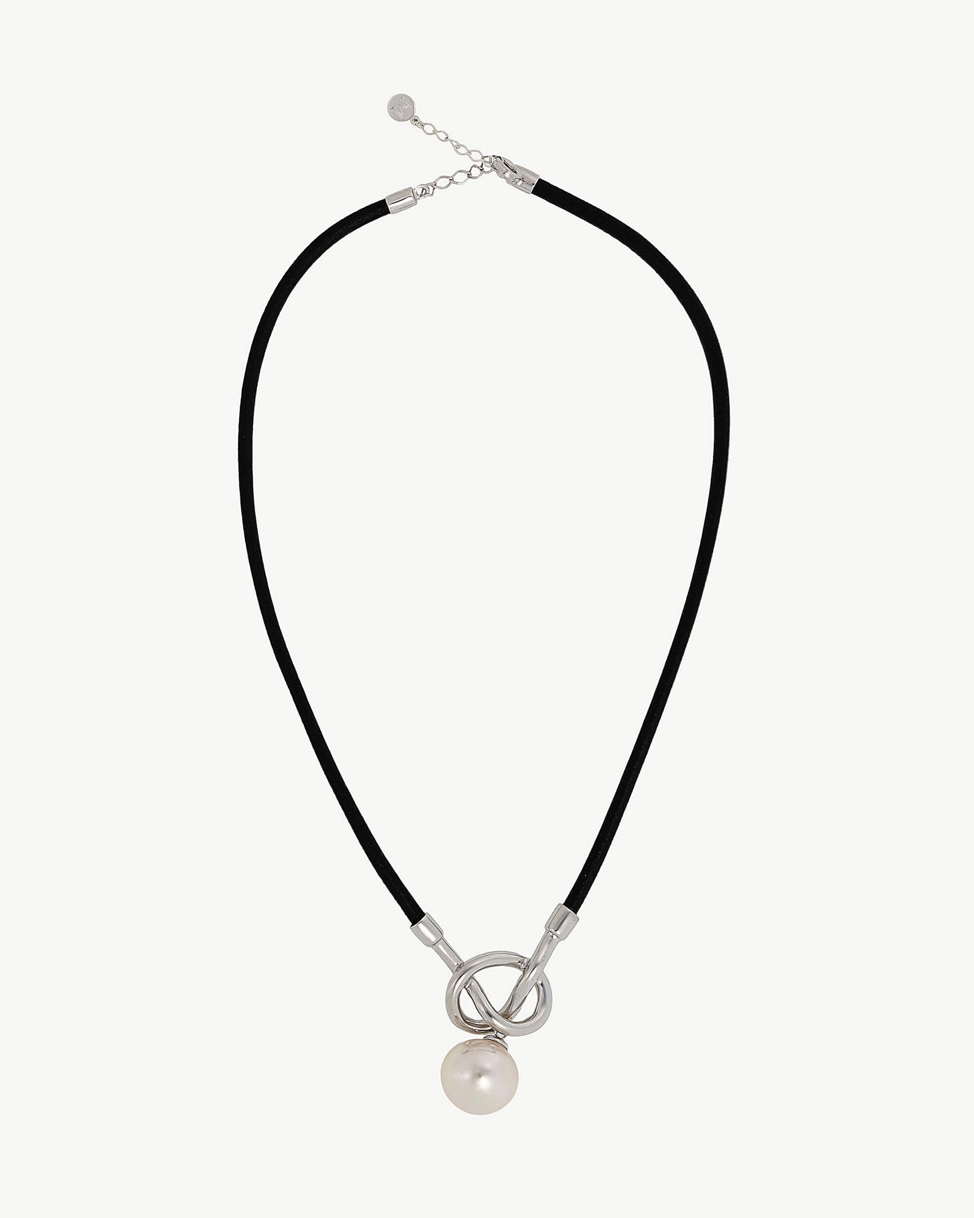 Gargantilla con cuero negro de 37/42cm en plata, 14mm perla Redonda blanca. Sicilia es una colección urbana y con mucho carácter.