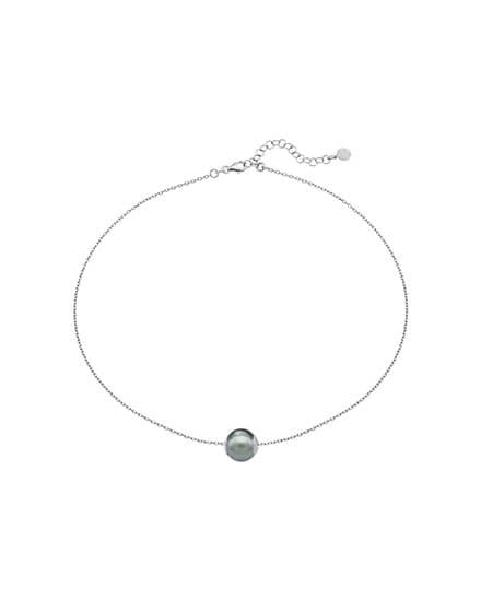 Gargantilla de 33/43cm en plata, con perla redonda gris de 12 mm.