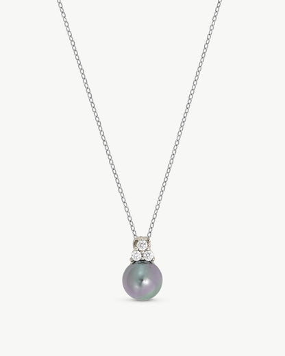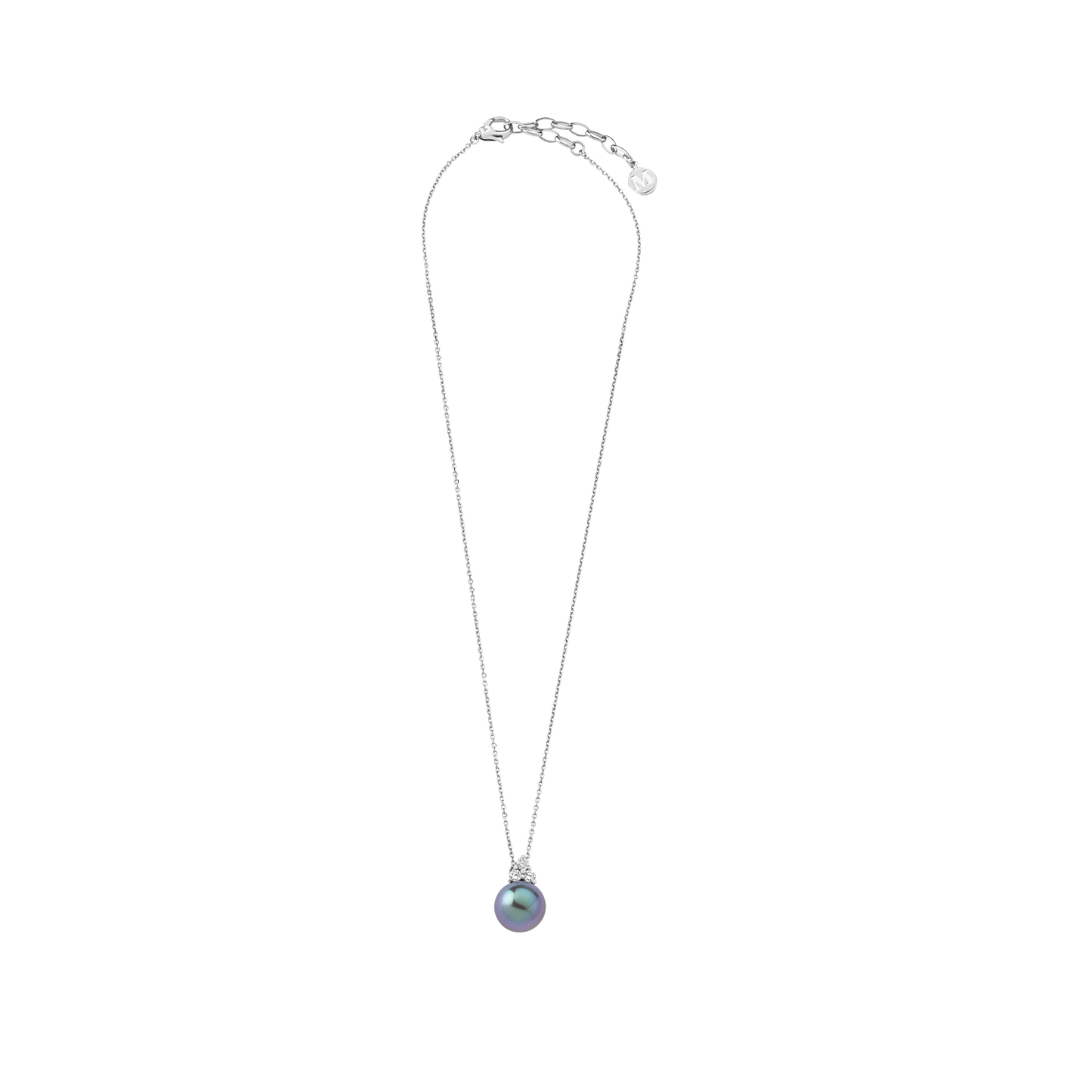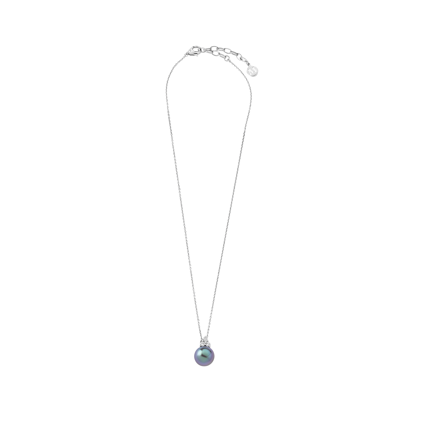 Colgante con cadena de 48cm en plata, 12mm perla redonda gris y circonita. Joyas para tu día a día.
