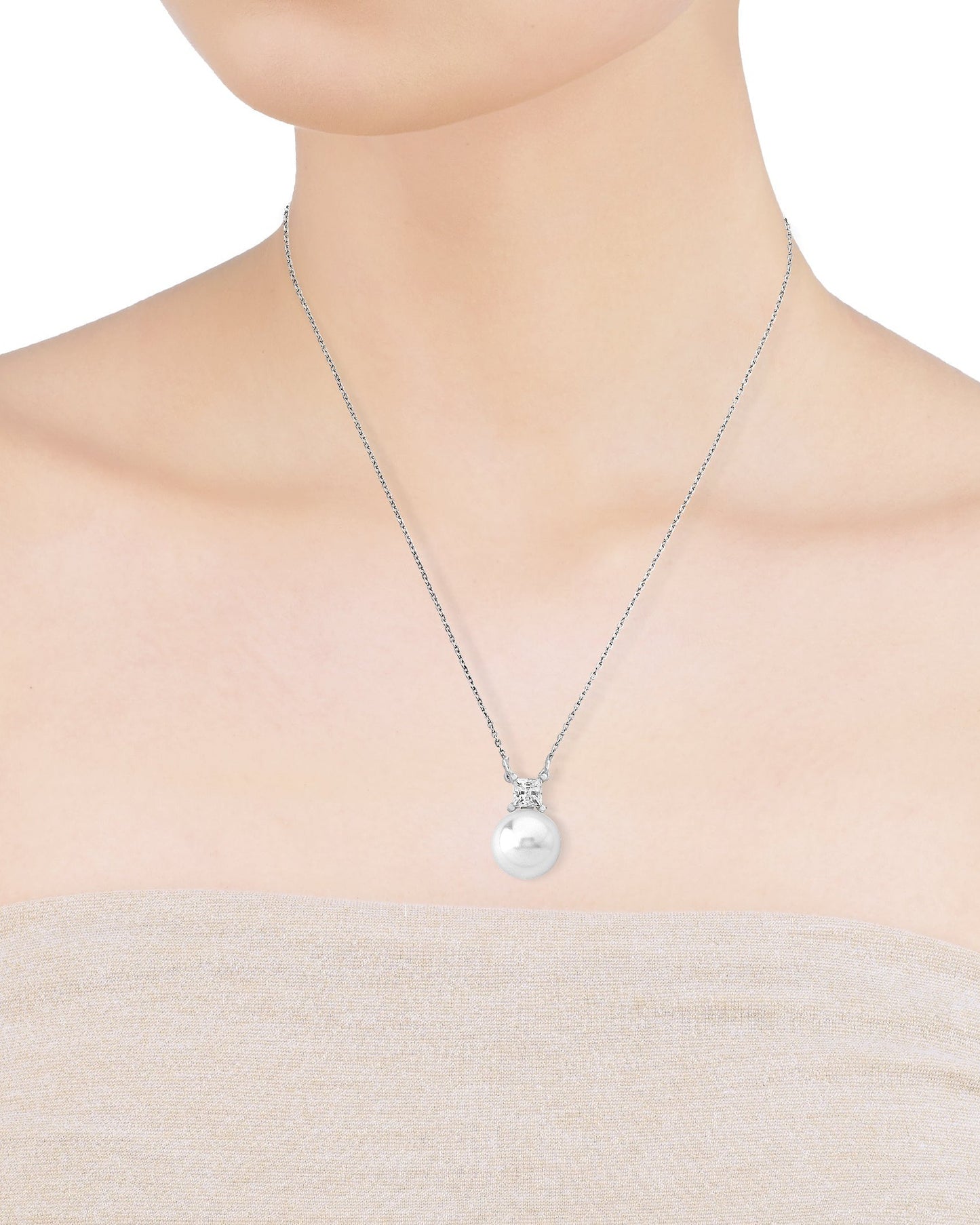Collar corto 42/47cm en plata, 12mm perla redonda blanca y circonitas. Joyas para tu día a día.