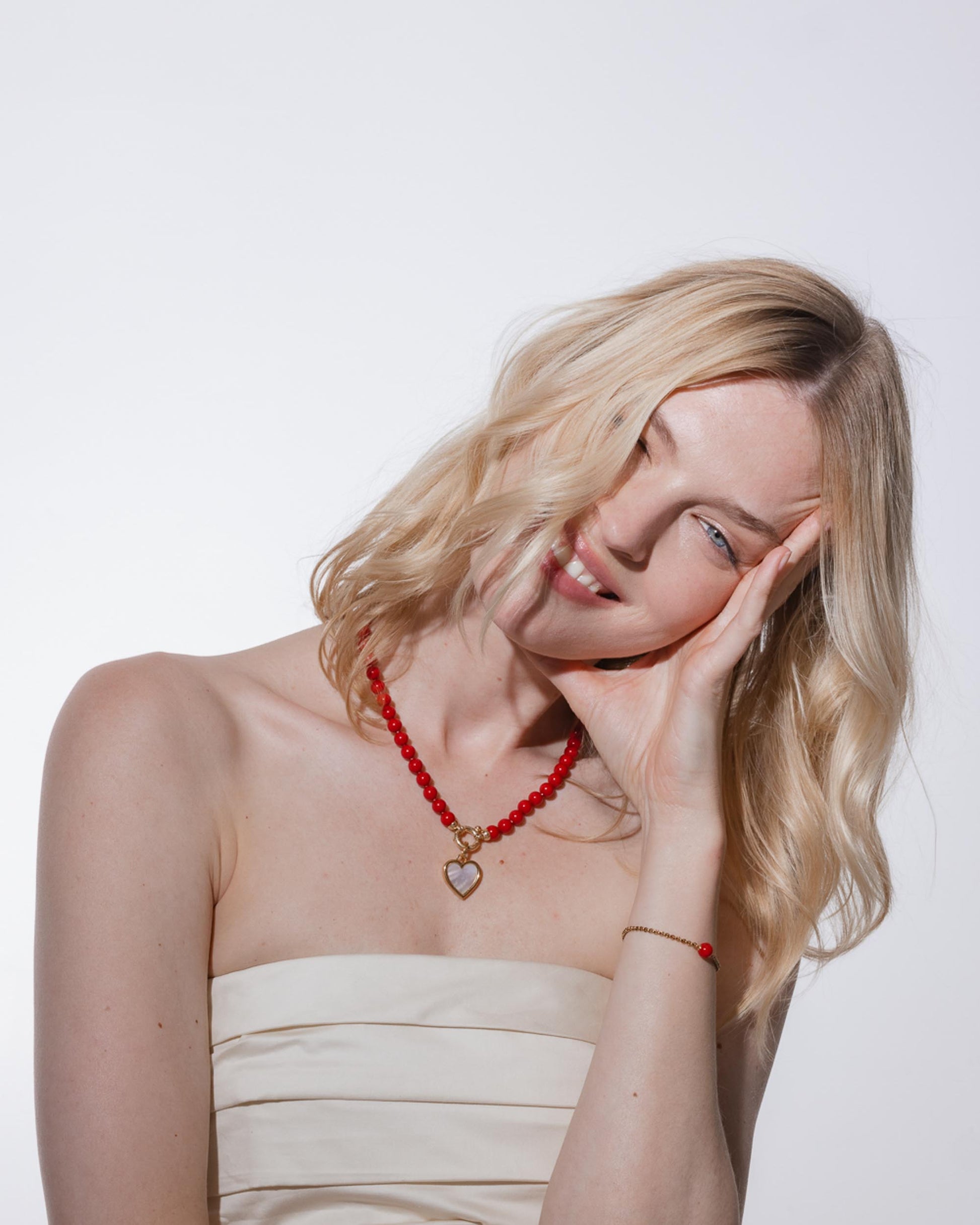 Este exclusivo pack combina la sofisticación atemporal del Collar Grace, elaborado en plata bañada en oro de 18k con perlas rojas de 8 mm, y la versatilidad y frescura de la pulsera Nuada, con perla roja de 8mm.