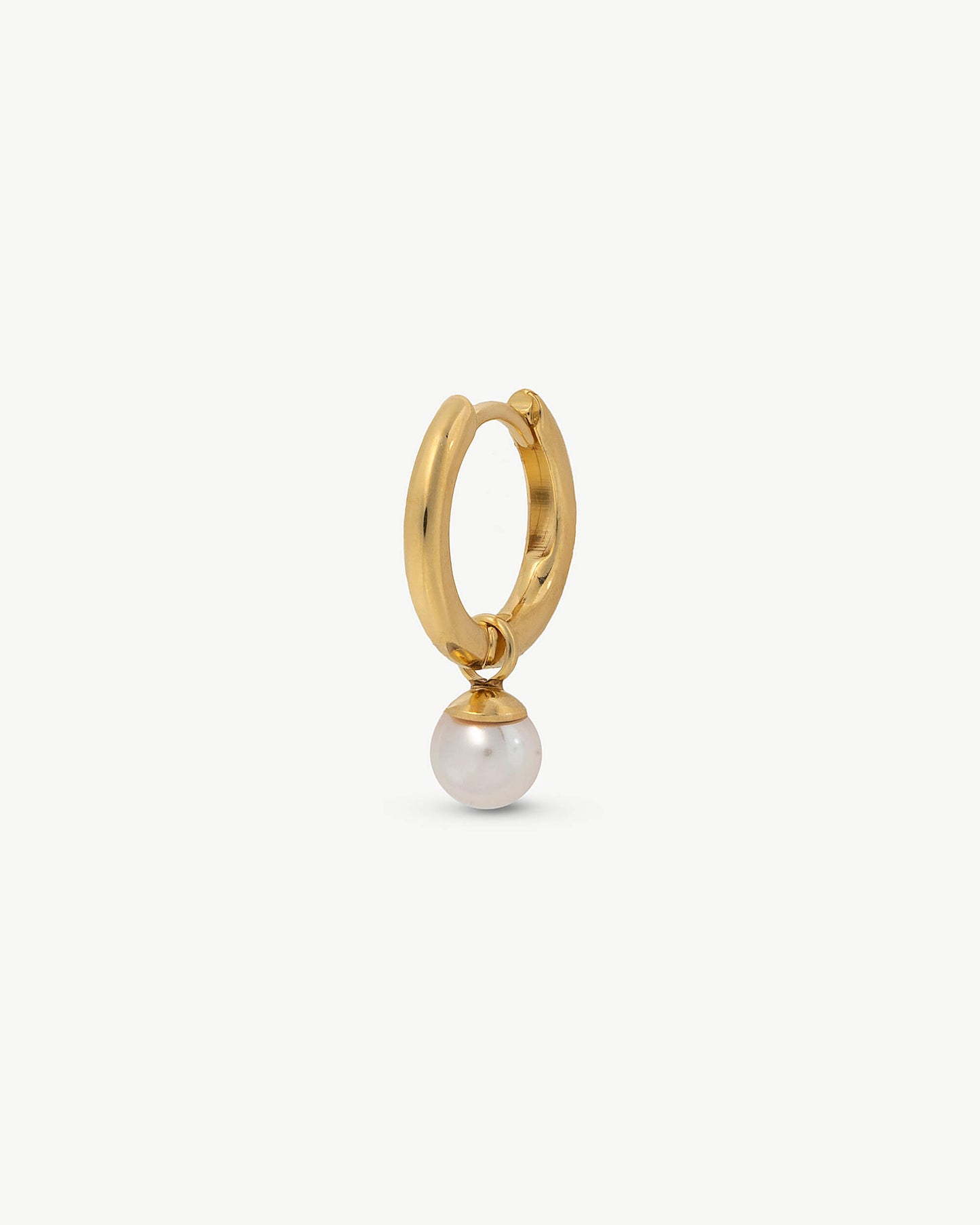 Mini hoop en plata bañada en oro de 18k con perla blanca de 4mm. (UNITARIO). Pendientes y colgantes intercambiables en combinaciones personalizables