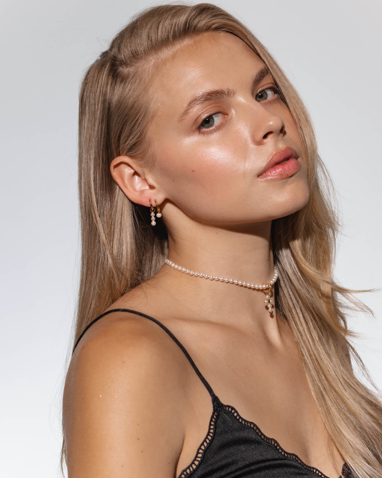 La colección Mini Charms ofrece una base de cadena versátil para colgar pendientes mini hoop o aro pequeño, con perlas de 4 mm en colores exclusivos.