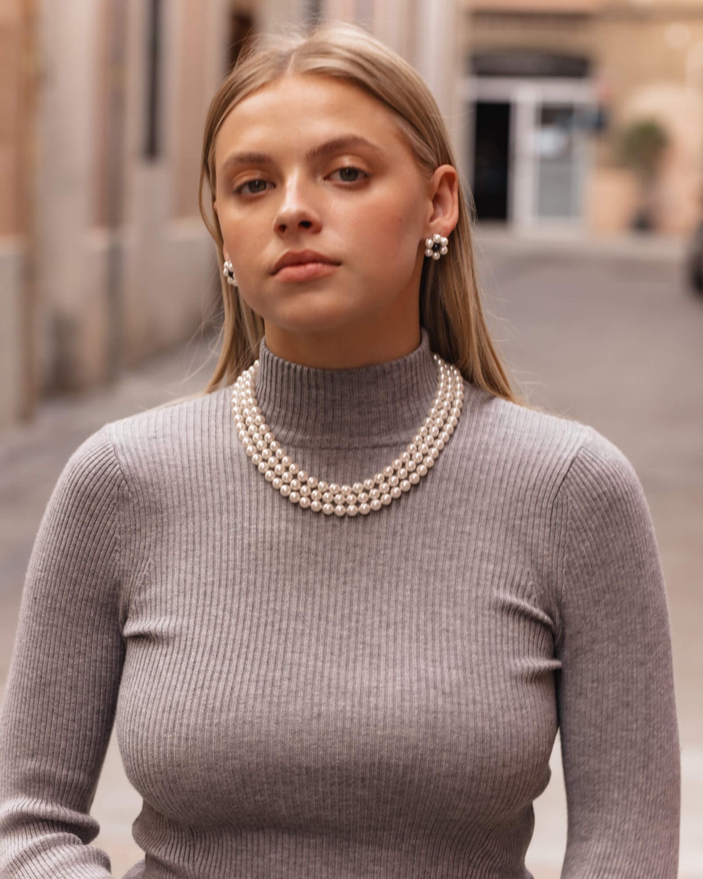 Llevar perlas es más que un simple gesto de estilo; es una declaración de elegancia atemporal. Cada perla encierra en su forma perfecta siglos de historia, sofisticación y refinamiento. Al llevarlas, conectas con una tradición que trasciende generaciones, un símbolo de feminidad, fortaleza y belleza interior. Son el reflejo sutil de tu esencia, realzando tu personalidad con una luz única, como si cada una de ellas contara tu historia personal. Las perlas no solo adornan, te envuelven en su aura de autenticidad y elegancia muy on trend.
