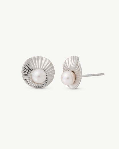Pendientes pequeños con cierre de pincho en acero y perla redonda blanca de 5mm.