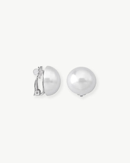 Pendientes con cierre omega sin pincho en plata y media perla mabé blanca de 18mm.