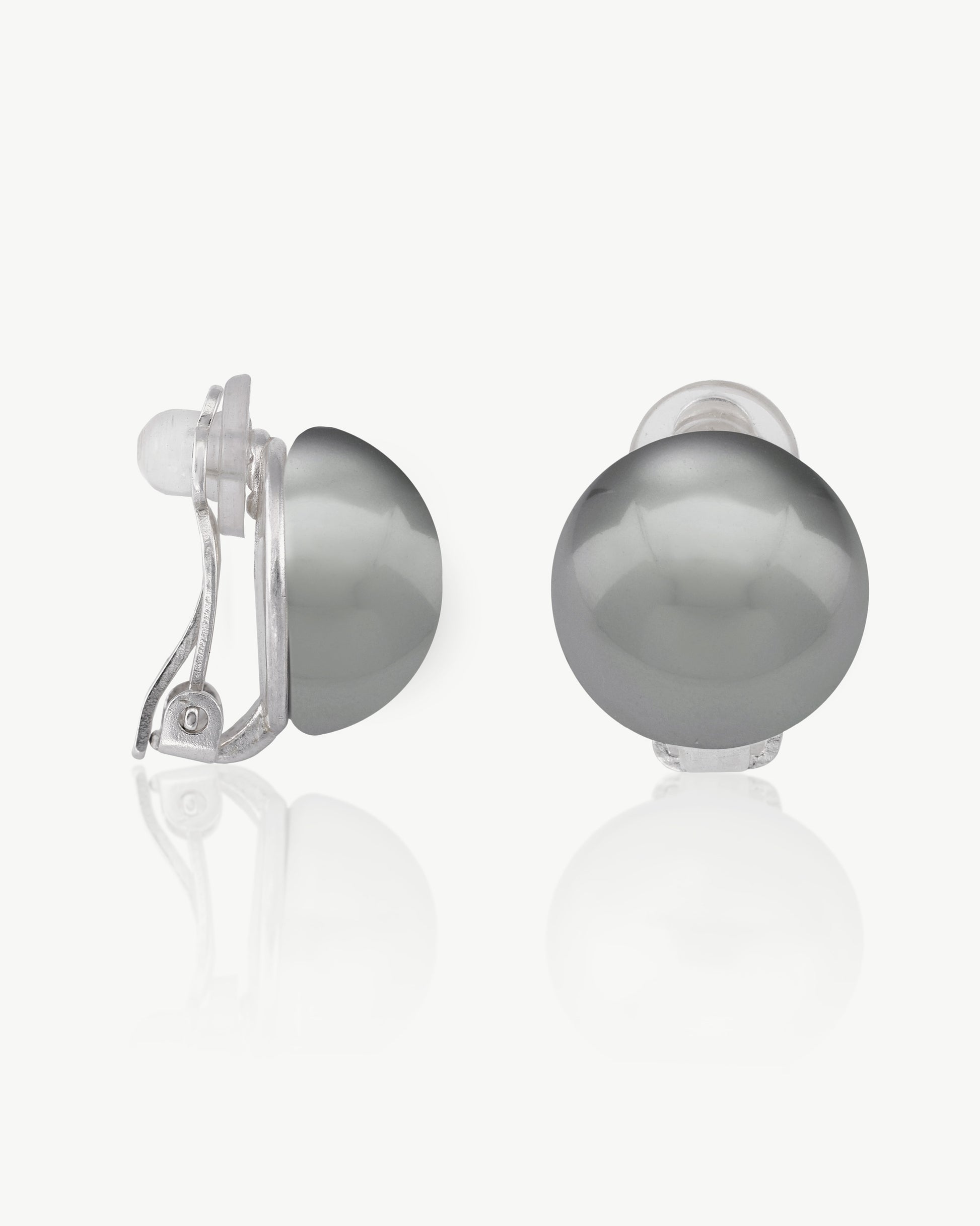 Pendientes con cierre omega sin pincho en plata y media perla gris de 14mm.