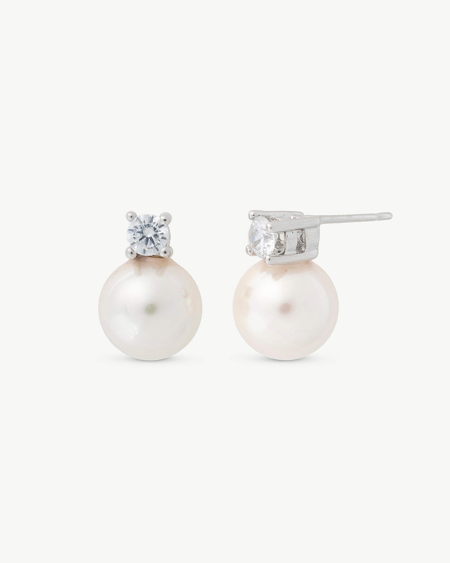 Pendientes cortos con pincho en plata con perla redonda blanca de 10mm y circonita. Unos Pendientes Tú y yo para tu día a día.
