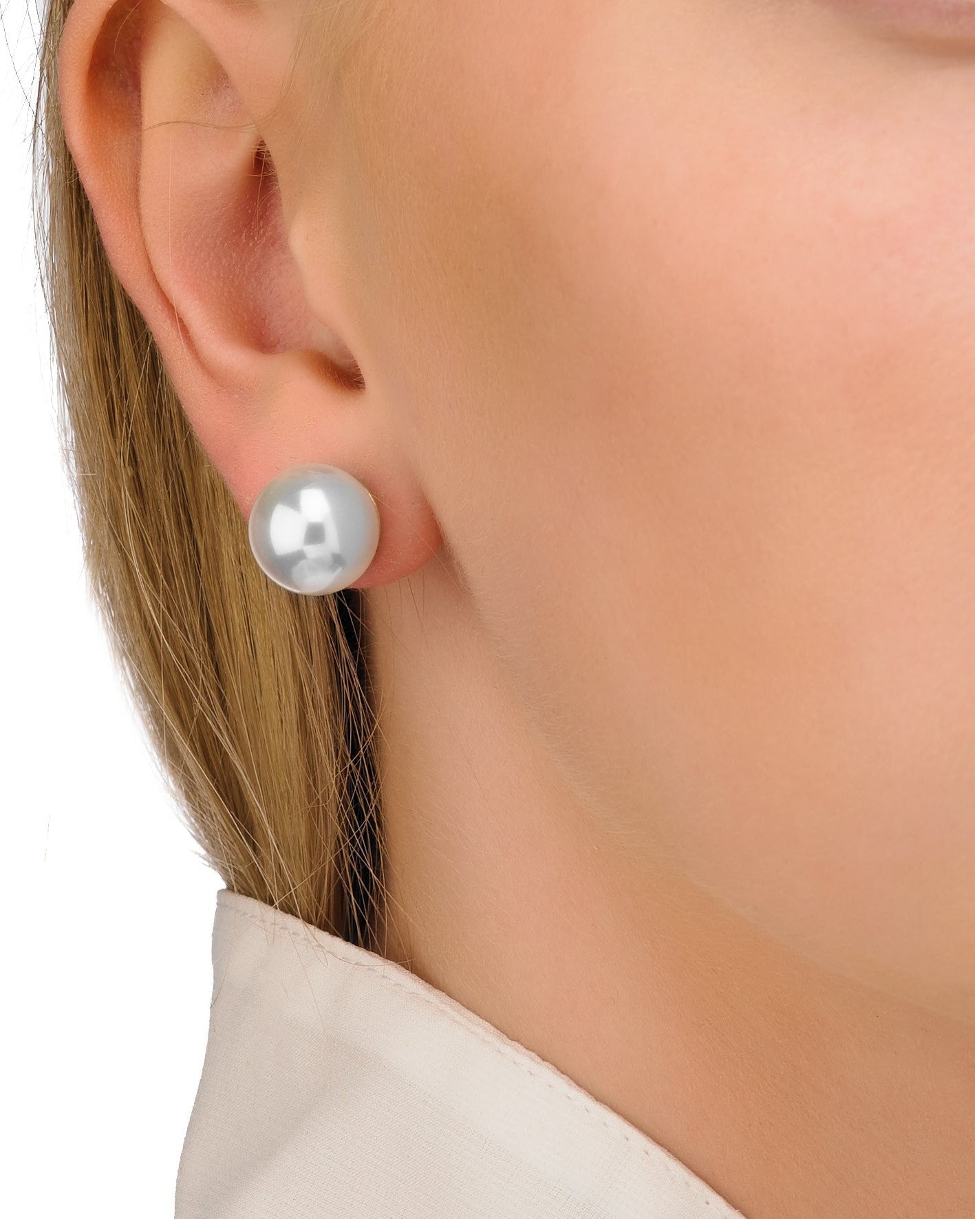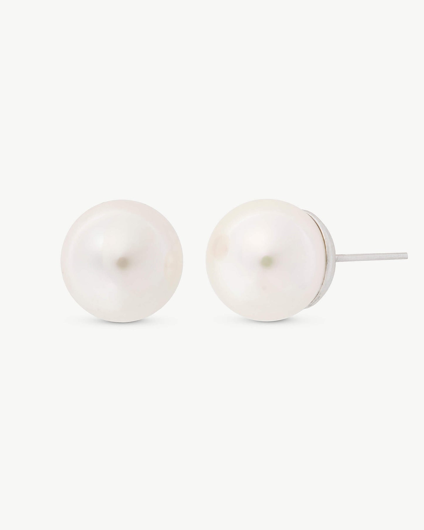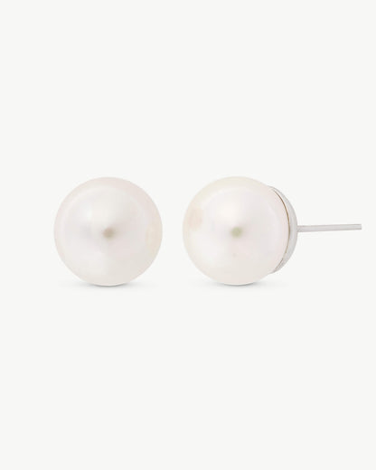 Pendientes de bolita con cierre de pincho en plata, con perla redonda de 12mm blanca.