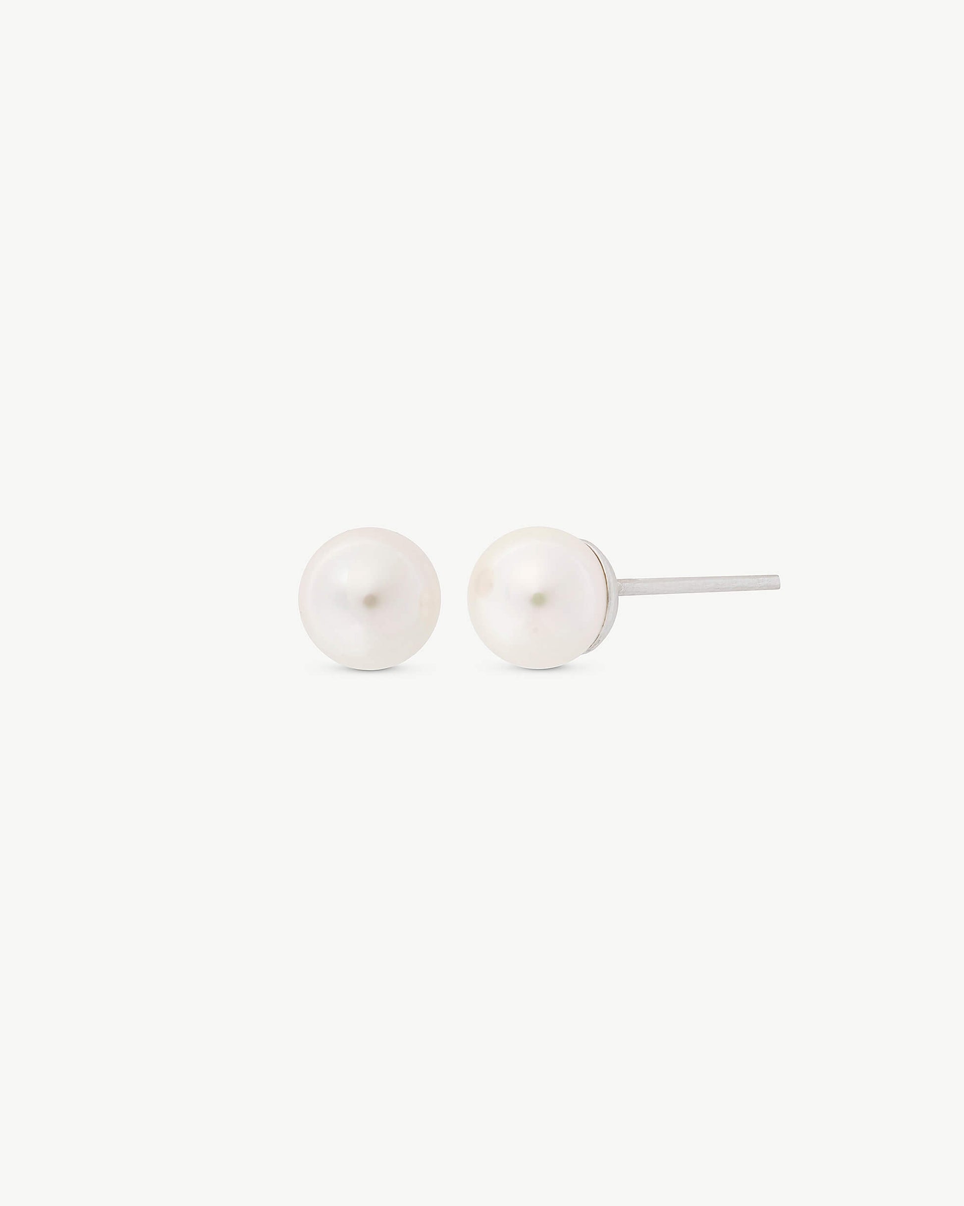 Pendientes de bolita con pincho en plata, con perla redonda de 5mm blanca.
