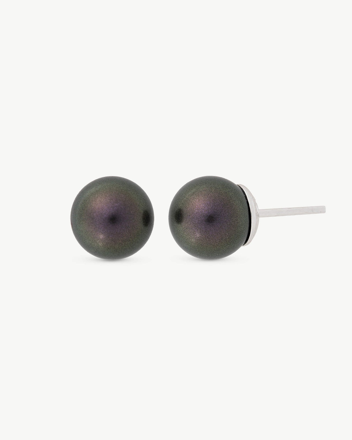 Pendientes de bolita con cierre de pincho en plata, con perla redonda de 8mm tahití.