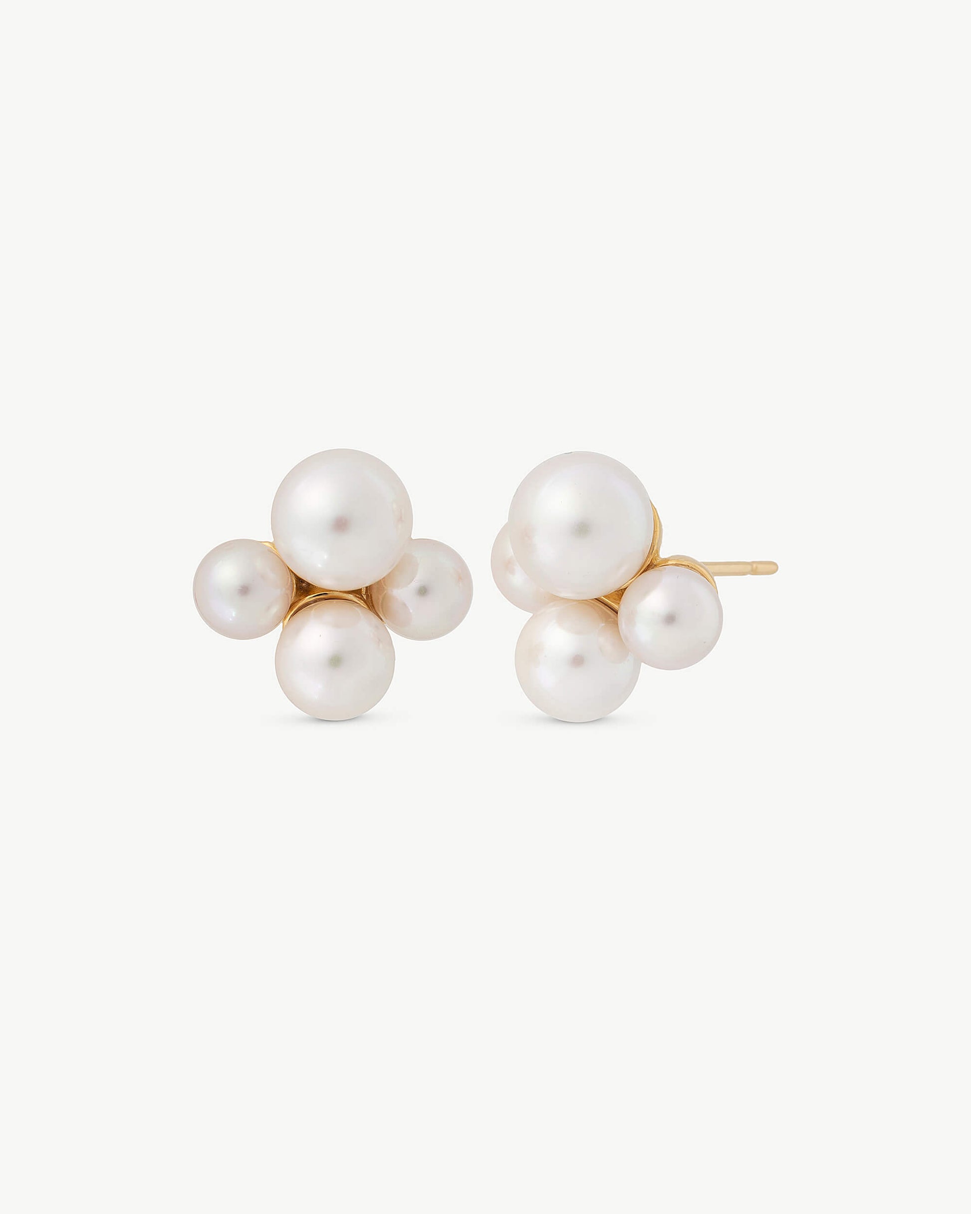 Pendientes cortos con cierre de pincho en plata bañada en oro de 18k y perlas redondas blancas de 5/6/7mm.